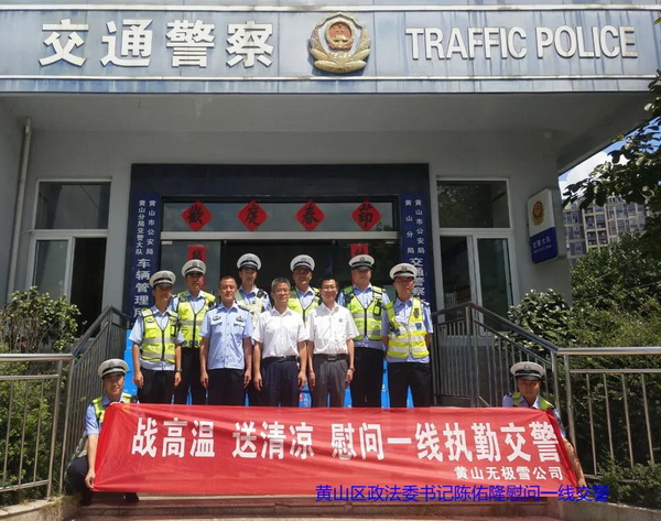 高溫送清涼,關(guān)愛暖人心!吳黎康董事長陪同陸群書記一行送水慰問高溫下執(zhí)勤交警